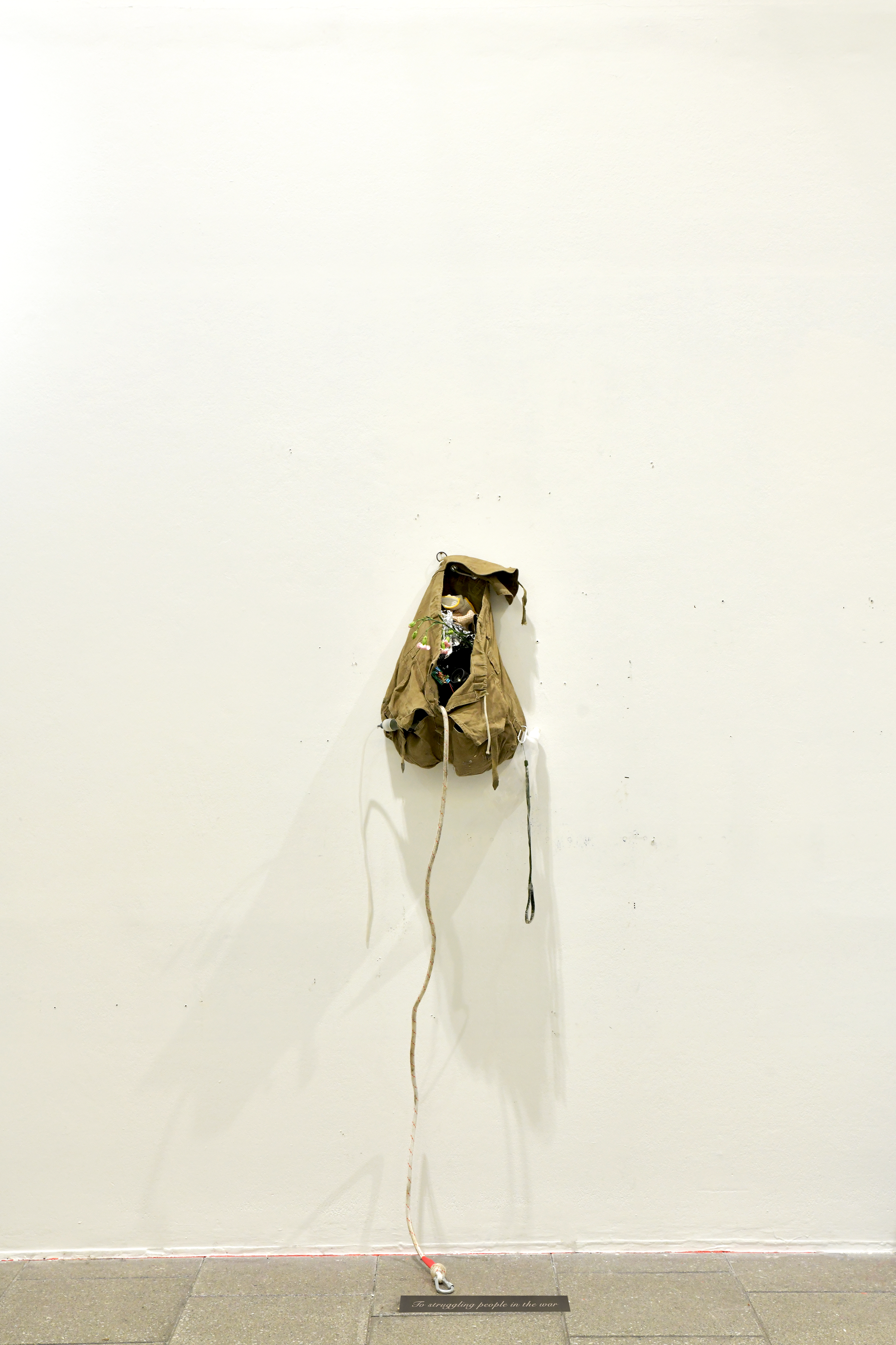 在无人武器战争时代,城市废墟中留下了一个背包——象征着有人为了躲避无人武器的追击而采取的极端措施。该作品凸显了现实的荒谬,人们不得不设计生存装备来对抗战争机器,而战争机器本身就是人类创新的杰作。背包是绝望的平民抵御无人机器的盾牌,它反映了战争残酷的现实。背包里装的不仅仅是工具,还象征着战争对个人生活的深刻影响。它挑战我们去面对一个令人不安的事实:在我们追求先进战争的过程中,我们不仅创造了毁灭的工具,也成为了我们自身毁灭的设计师。
